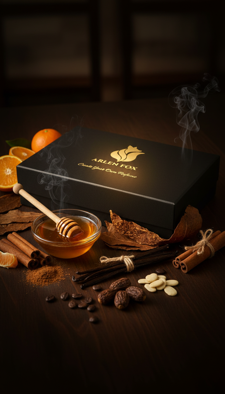 AUREUM TOBACCO, bal ve tütünün sıcak uyumunu; amberimsi, baharatlı ve tatlı bir derinlikle birleştiren premium bir parfüm hazırlama kitidir.
